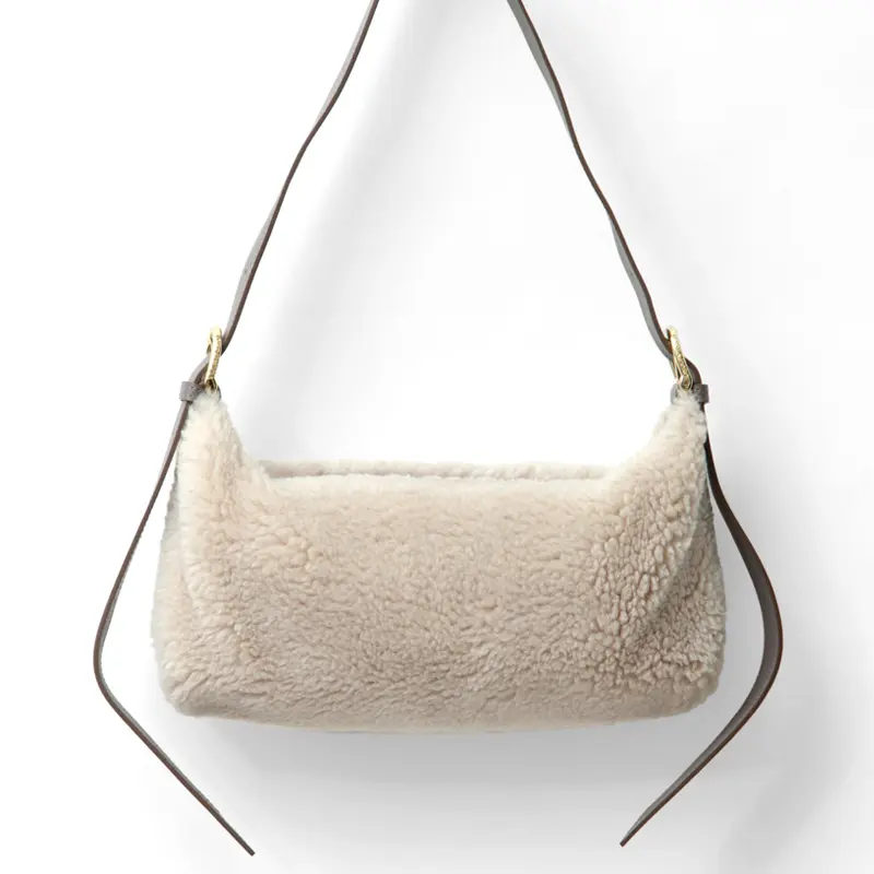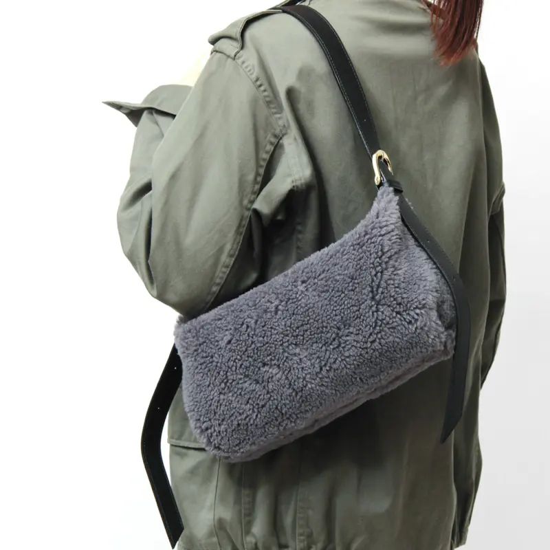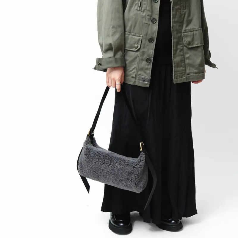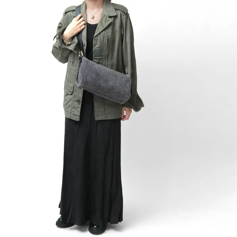 エコムートンのもこもこ感が可愛い"VIOLAd'ORO/ヴィオラドーロ"のファーバッグ。横長フォルムがほどよくアクセントになり、温かみのある素材がコーディネートに季節感をプラスしてくれます。必需品がコンパクトに収まるサイズ感で、デイリー使いはもちろん、旅行など多様なシーンで活躍します。