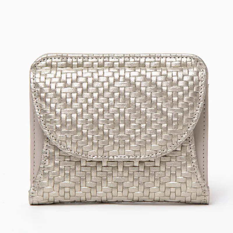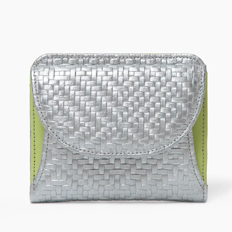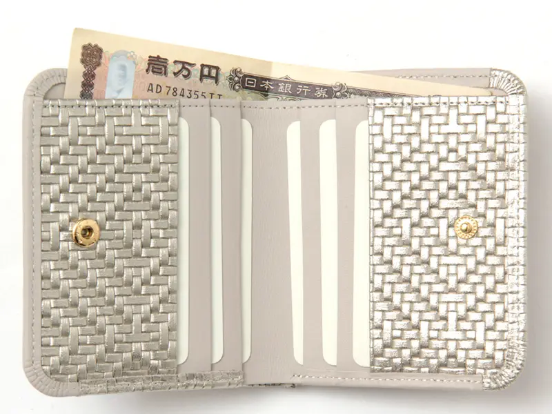 ARUKAN アルカン Panero 牛革メッシュ型押し 二つ折り財布 シルバー