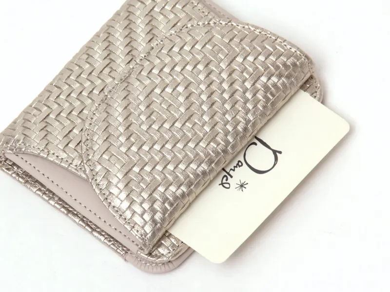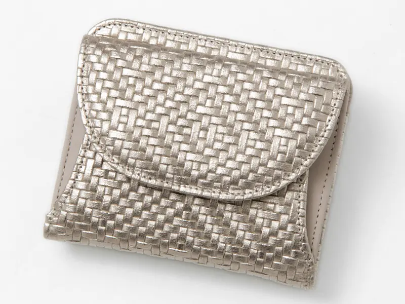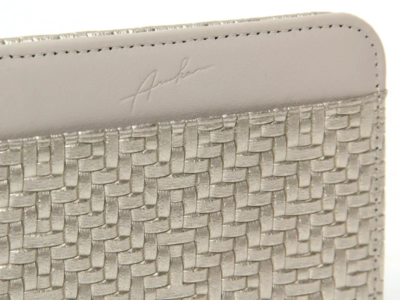 触り心地がソフトなイタリアのメッシュ型押し革。織物をイメージして作られた立体感のある細やかな模様になっています。触り心地がとてもソフトで柔らかく、女性の小さな手にも馴染みやすい素材感です。