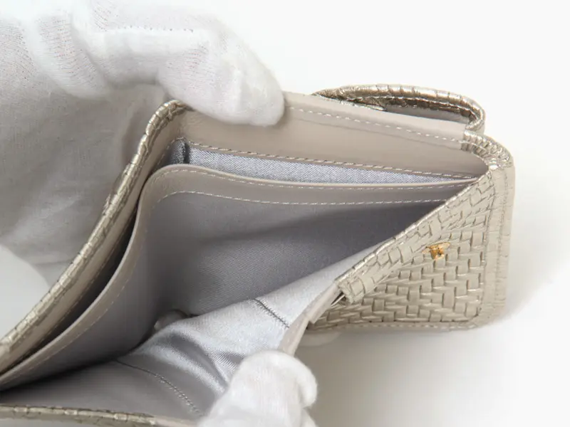 控えめな輝きで黄色みが少なく上品なゴールド。風水で金運を招くとされる金色の財布はアクセサリーのように手元を煌びやかに演出してくれます。