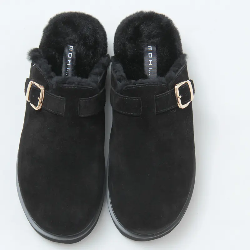 MOHI サンダル モヒ 靴 サボ ファーサンダル 内ボア スエード スリッパ スリッポン クロッグ ふわもこ 秋 冬 本革 レディース 22161A