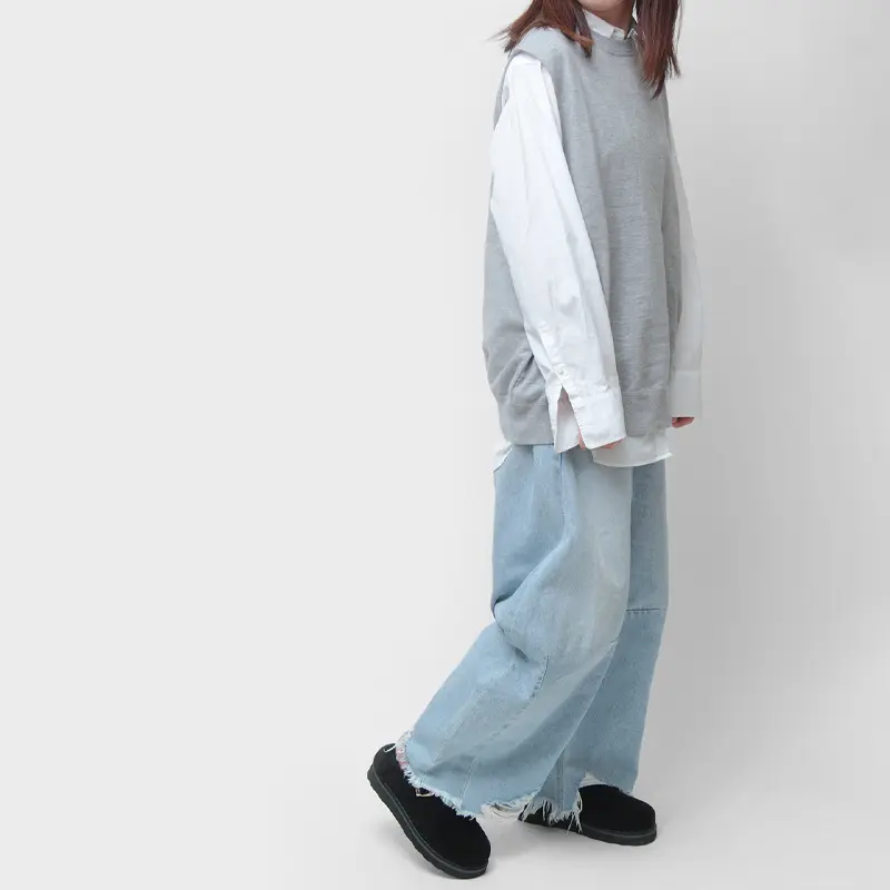 内側全面に敷き詰められた柔らかなファーが、足元をふんわりと暖かく包み込みます。まだ暑さが残る初秋は素足で、涼しくなってきたら靴下と合わせて、暖かさとファッション性を両立できます。吸湿性にも優れた素材なので、汗をかいてもべたつかず、一日中快適な履き心地。踵のないスリッポンタイプで、スリッパみたいに足を入れるだけでサッと履ける着脱のしやすさが魅力です。