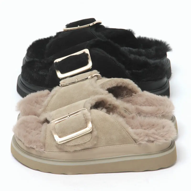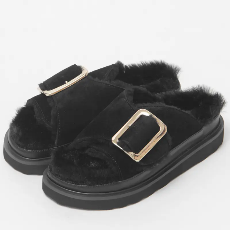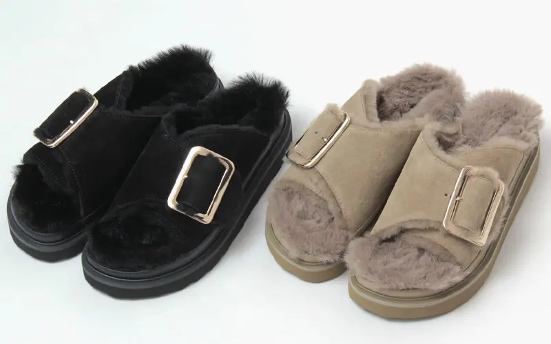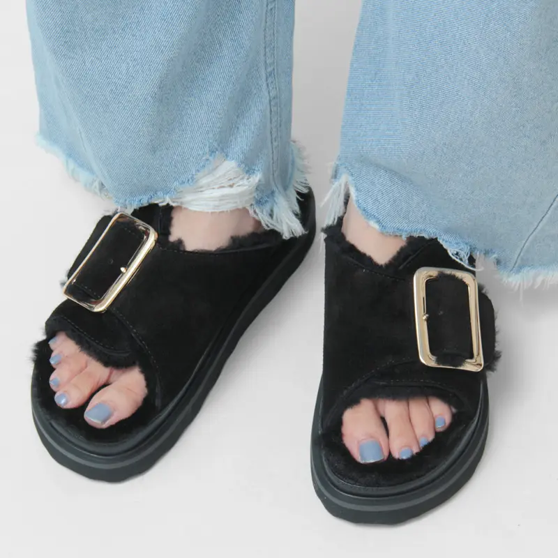 MOHI サンダル モヒ 靴 ファー オープンサンダル ボア スエード 厚底 ふわもこ 冬 本革 バックル レディース 1902466