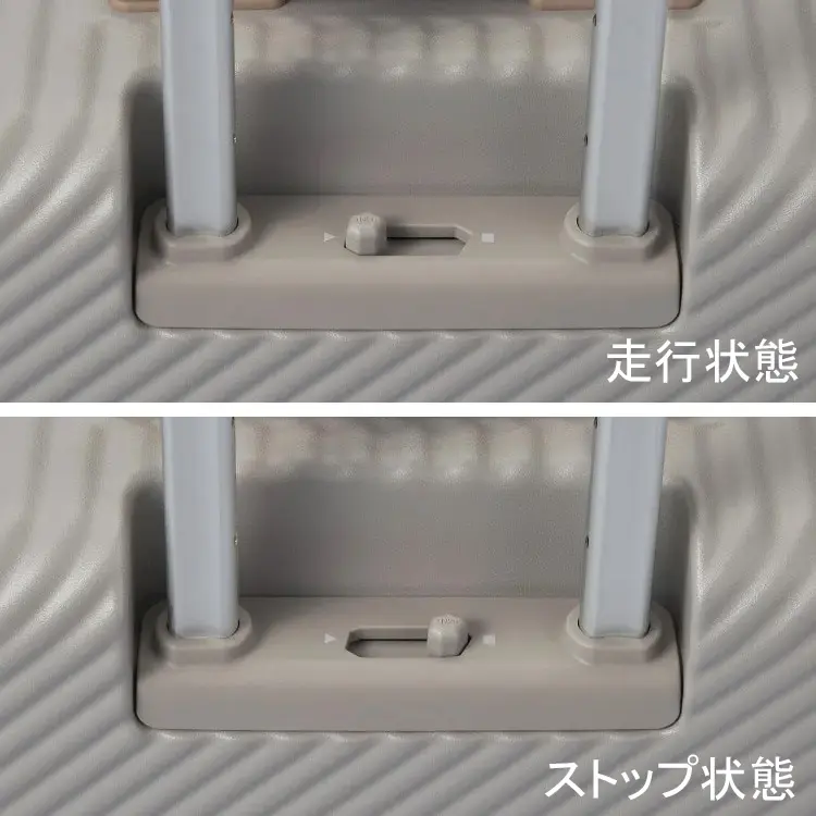 電車での移動中に便利なキャスターストッパー付き。操作も手元のワンタッチで簡単に行えます。