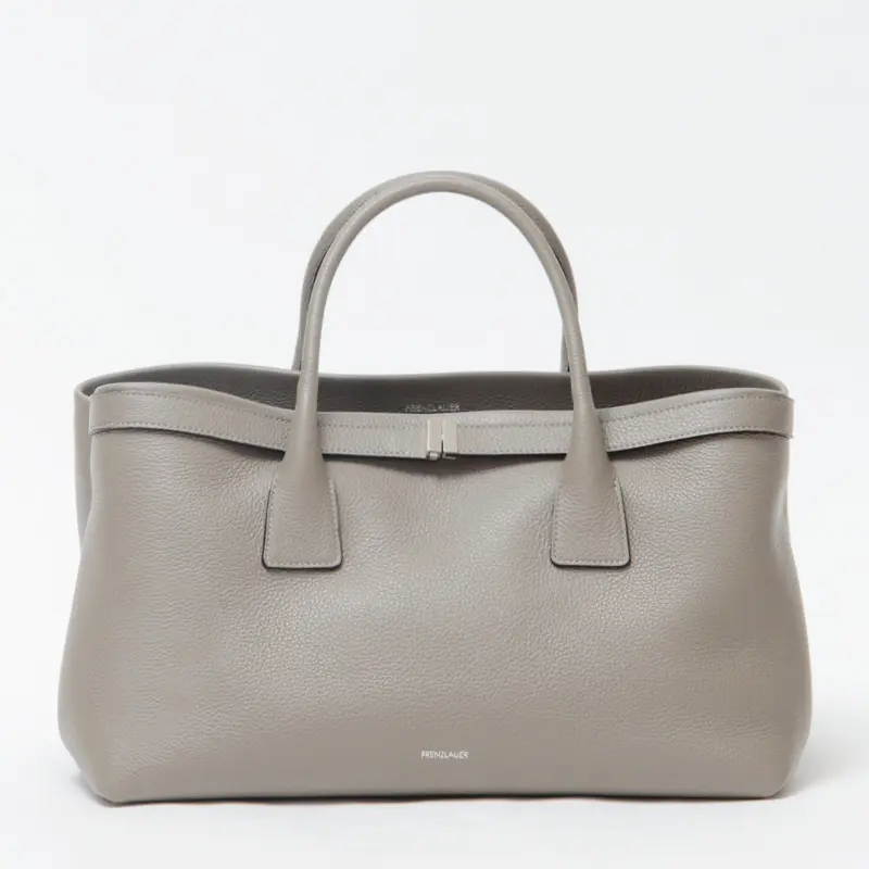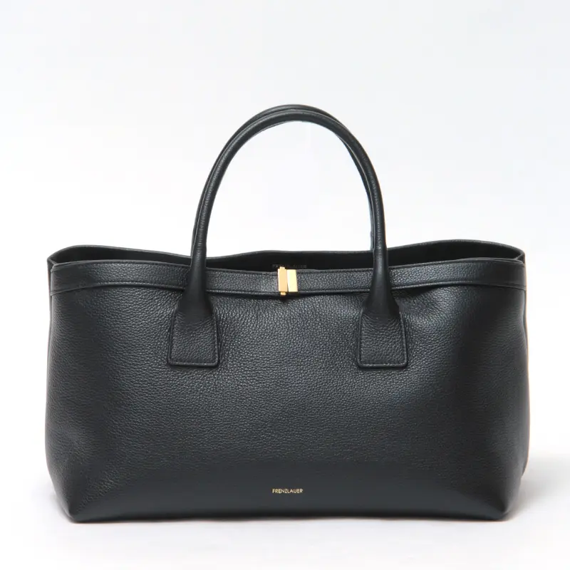 無駄を削ぎ落としたクリーンなシルエットに、さりげなくブランドロゴをあしらった、FRENZLAUER(フランツロアー)のトートバッグ「GRETA BAG」。 しっとりと柔らかなグレインレザーが上品さを引き立て、中央に配されたゴールドの金具が、シンプルな佇まいにさりげない華やぎを添えます。トレンドに左右されることなく、毎日の装いに自然と溶け込む一品です。