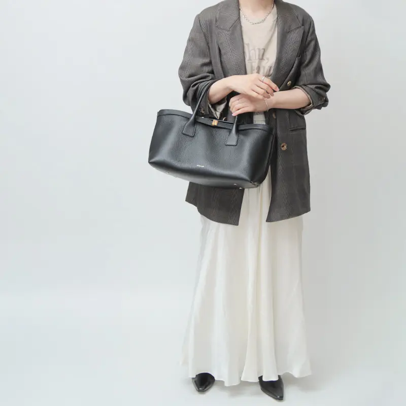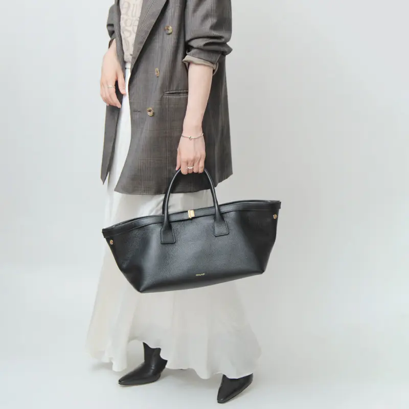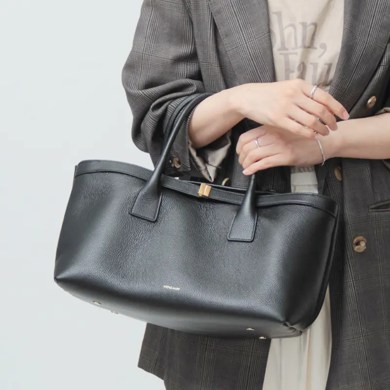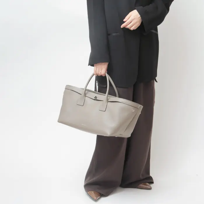 気控えめな美しさが際立つミニマルフォルム。毎日をスマートに過ごしたい大人の女性にふさわしいトートバッグです。