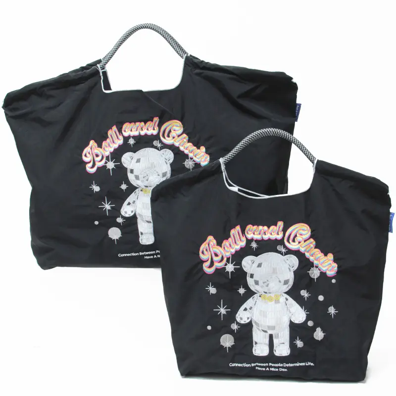 BALL&CHAIN ボールアンドチェーン MIRROR BALL BEAR (ミラーボールベア) エコバッグ (M) (L) ブラック M