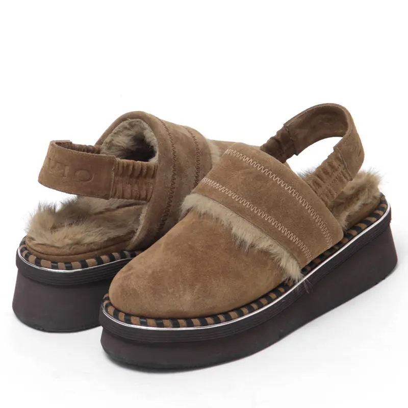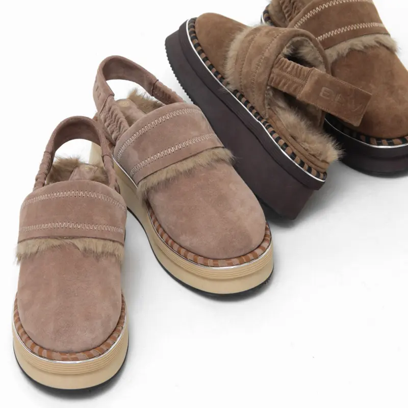遊び心あふれるデザインと、温かみのある季節感をまとったプラットフォームサンダル。程よいボリューム感とかかとのないデザインが、リラックスしたこなれ感を演出します。柔らかなスエード素材とナチュラルなカラーが、頑張りすぎない自然体なスタイルにぴったり。デニムやニット、シャツなど、定番のカジュアルアイテムに合わせるだけで、ワンランク上の着こなしが楽しめます。