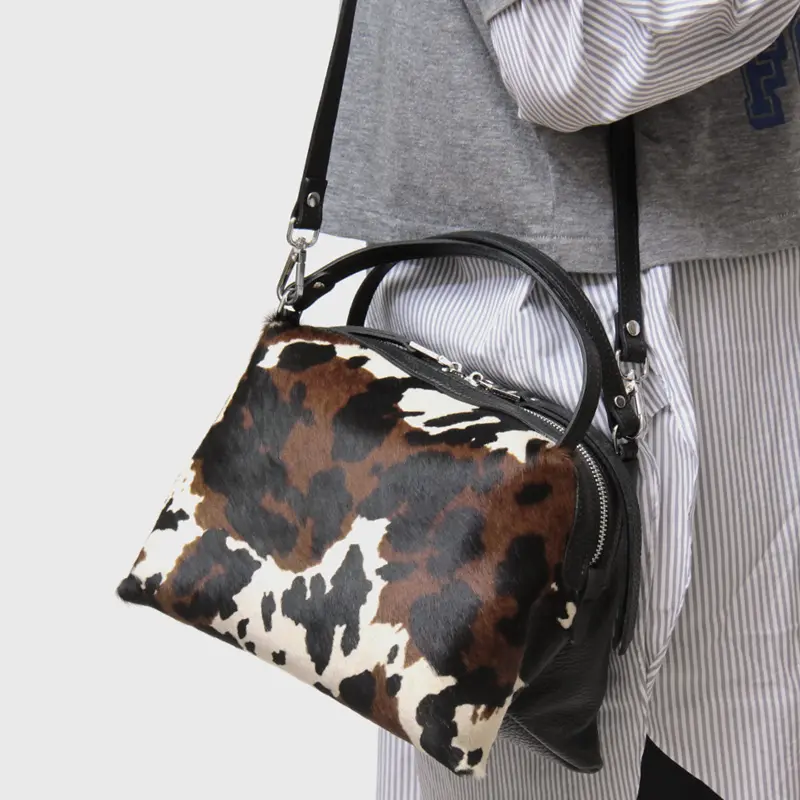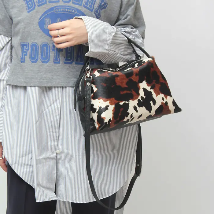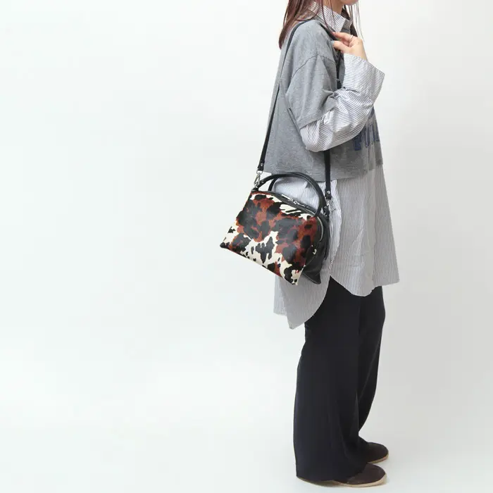 その日の気分やスタイルに合わせて、手持ちのトートバッグとしても、肩掛けのショルダーバッグとしても使える2WAY仕様。クロスボディにすれば両手が空くので、ショッピングや旅行などアクティブなシーンにも便利です。上質なレザーのハンドルとストラップが、ハラコのユニークなデザインを上品に引き立てます。