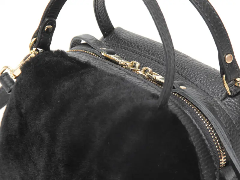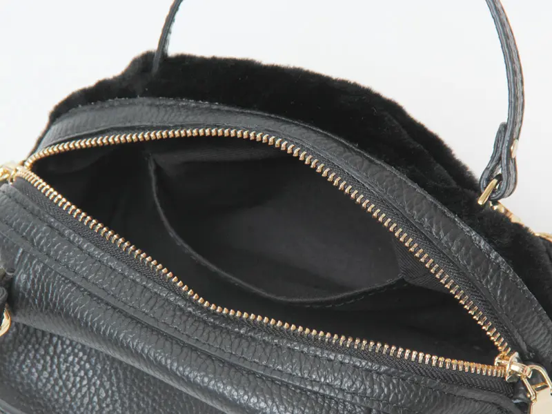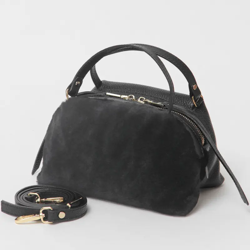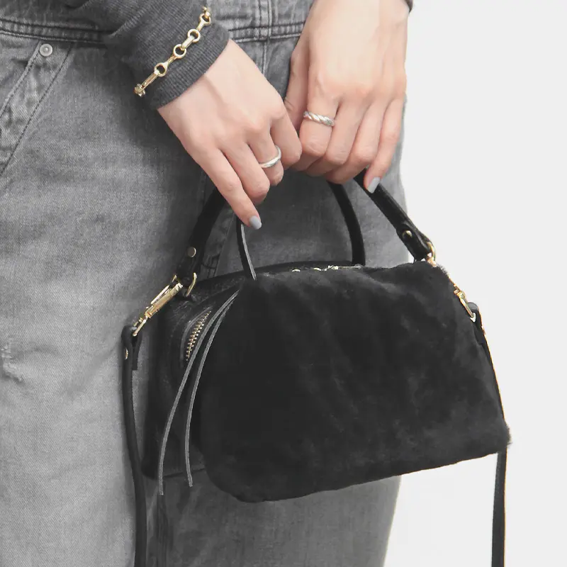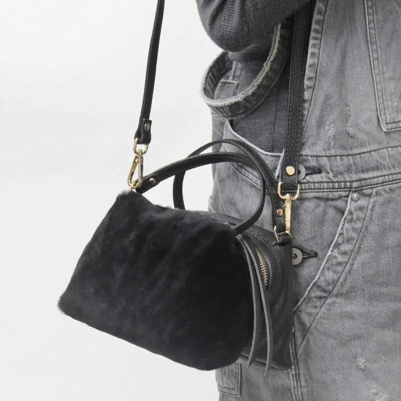 見た瞬間に心を奪われる、もこもこ感がたまらないバッグ。秋冬の気分を盛り上げるコロンとしたフォルムと、ムートン×レザーの素材感がポイント。シックなオールブラックで甘さを抑え、どんなスタイルにも合わせやすいのが魅力です。秋冬らしい温かみと、イタリアブランドならではの洗練されたデザインを両立。カジュアルからフォーマルまで、シーンを選ばず活躍します。