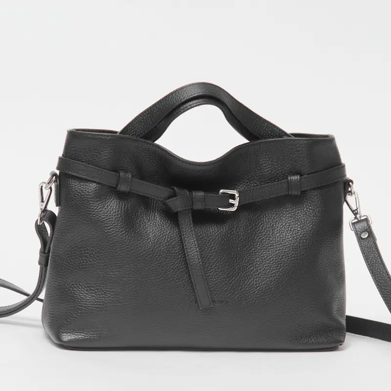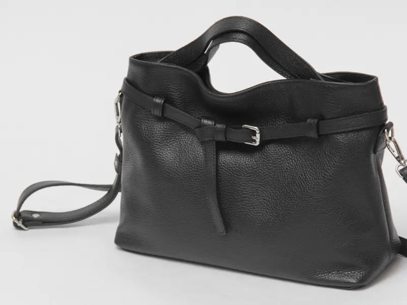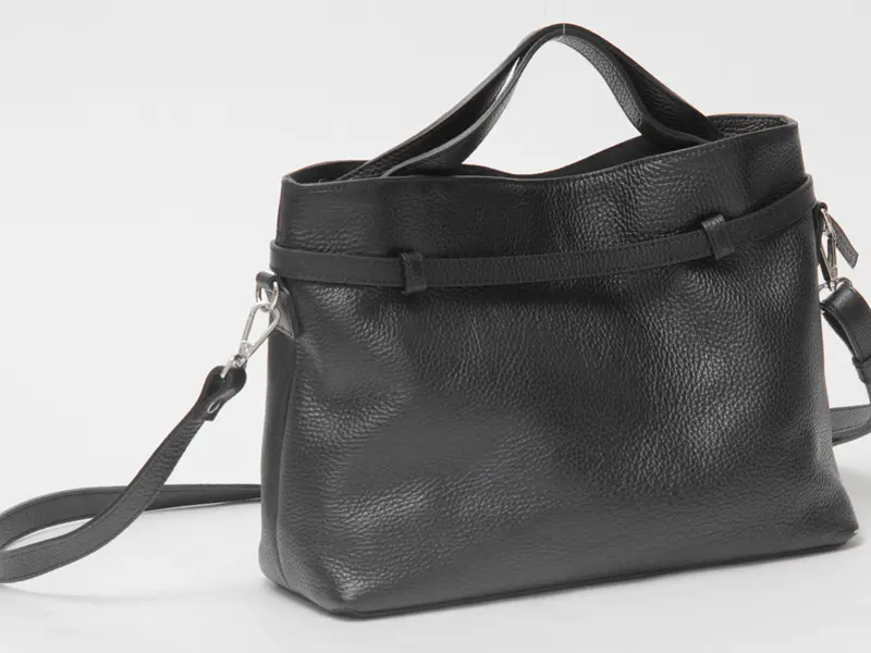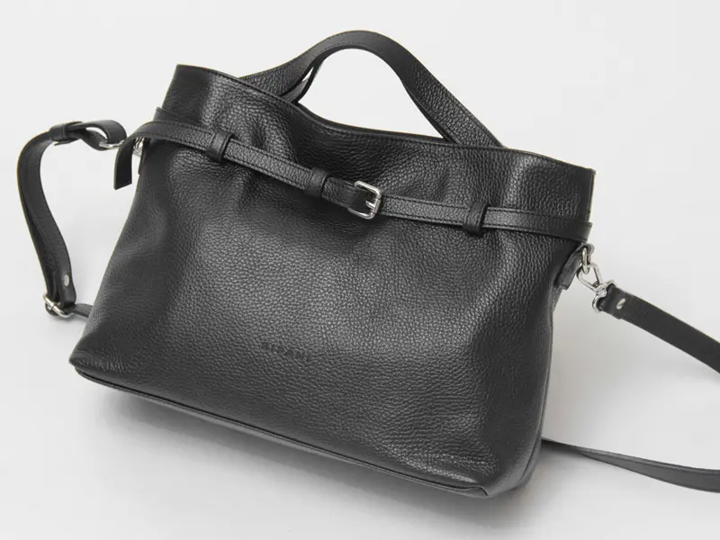 高品質なイタリアンシュリンクレザーを使用。柔らかな手触りで、傷や汚れが目立ちにくいのが特徴です。使い込むほどに風合いが増し、長くご愛用いただけます。また、洗練されたベルトデザインが上品なアクセントとなり、持つだけでコーディネート全体を格上げする「made in ITALY」の逸品です。