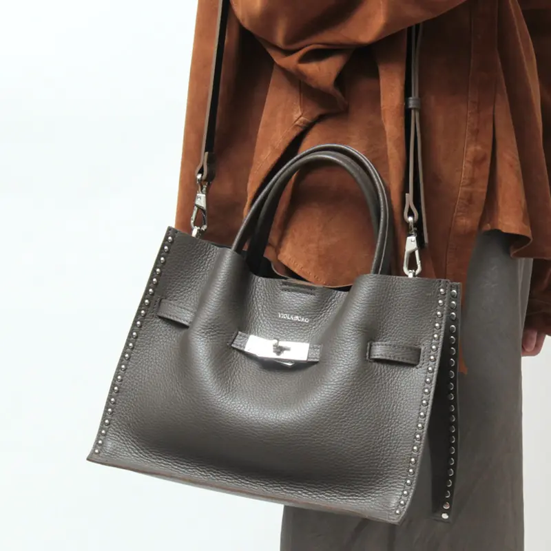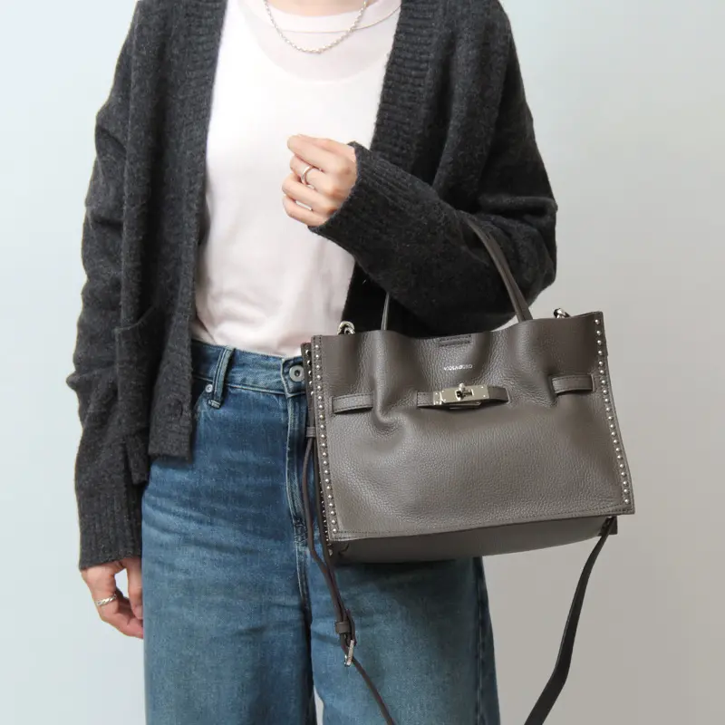 VIOLAd'ORO ヴィオラドーロ MIRO スタッズ 2way トート (M) V-8993 ダークトープ