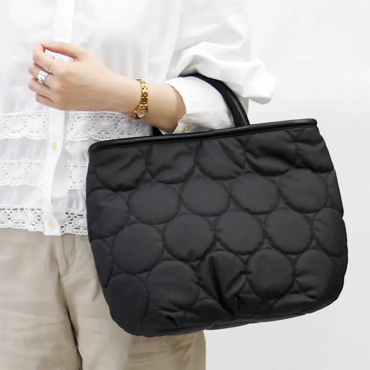 VIA DOAN ヴィアドアン Parrot ドットキルティング トートバッグ ブラック