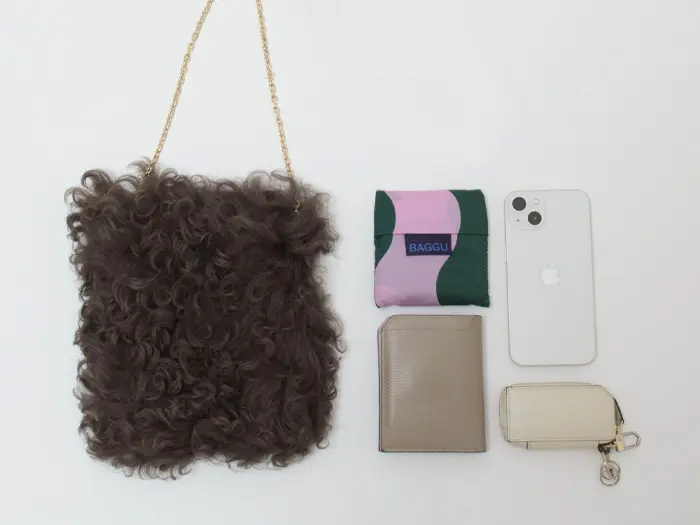 折り財布やスマホなど手回り品が収まるミニサイズです。必要最小限の荷物でお出かけしたいときや、ポケットがない服を着るときに最適です。また、貴重品を入れてサブバッグとの2個持ちもおすすめです。