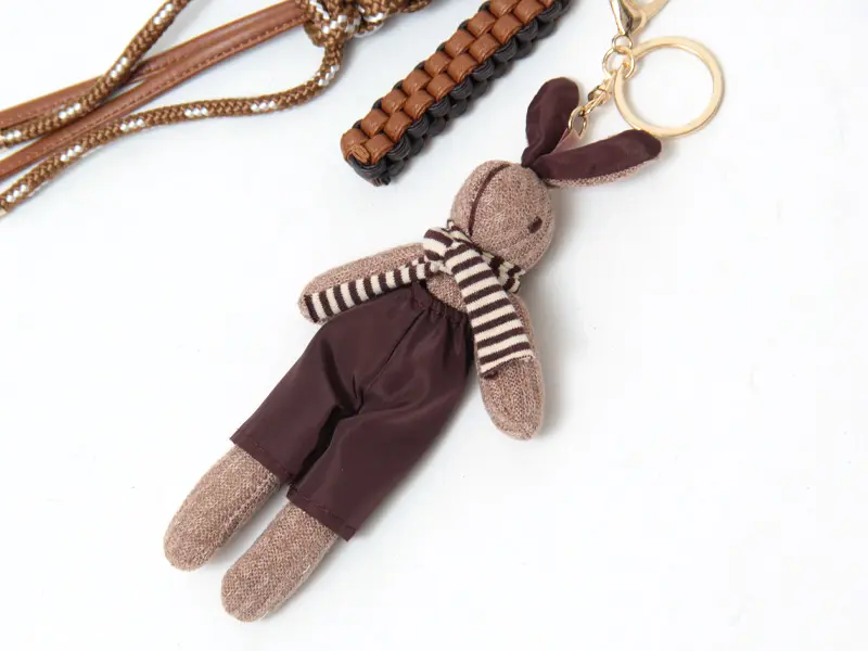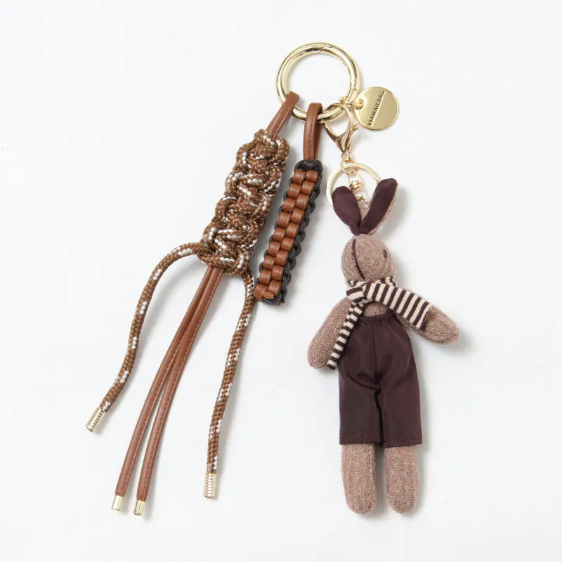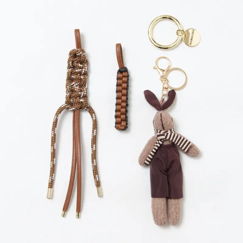 ウサギが主役のチャーム。パーツはすべて取り外しができ、組み合わせも自由自在。ブラウン系で統一されたカラーリングが大人にぴったりです。