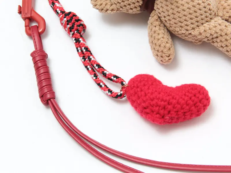 クマさんが印象的なチャーム。パーツはすべて取り外しができ、組み合わせも自由自在。赤いハードがキュートなアクセントを効かせています。