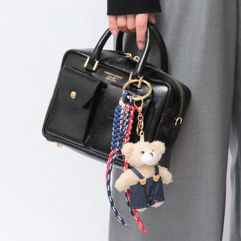 愛らしいクマモチーフが印象的なバッグチャーム。異なる表情を楽しめる、2種類のデザインをご用意しています。すべてのパーツは取り外しが可能で、自由に組み合わせを楽しめるのも魅力。キュートなアクセントとして、コーディネートに遊び心と華やかさをプラスしてくれます。