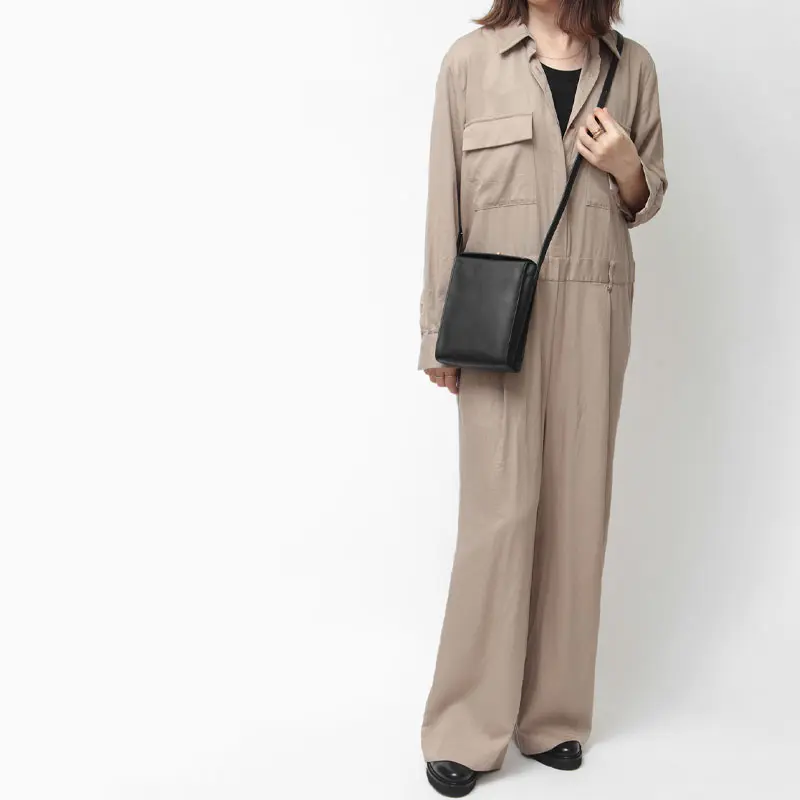 折り財布やスマートフォン、眼鏡ケースといった必需品が、すっきりと収まるサイズ感です。内側背面と外側背面にオープンポケットがあり、スマホやICカードなど、すぐに取り出したい小物を整理して収納できます。