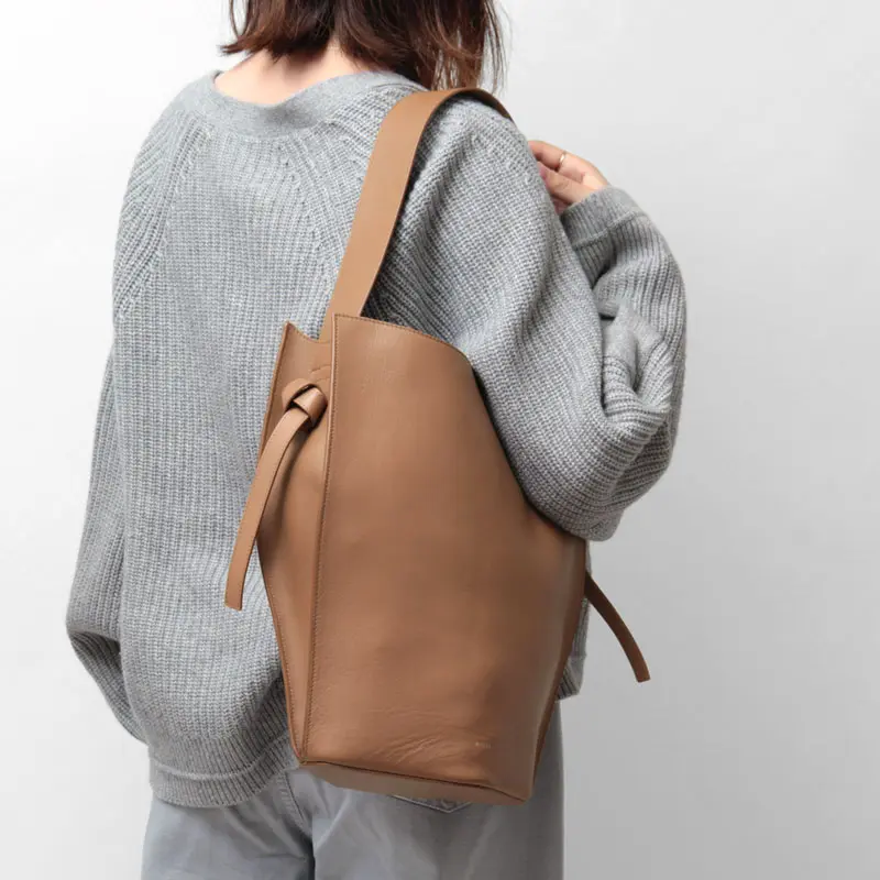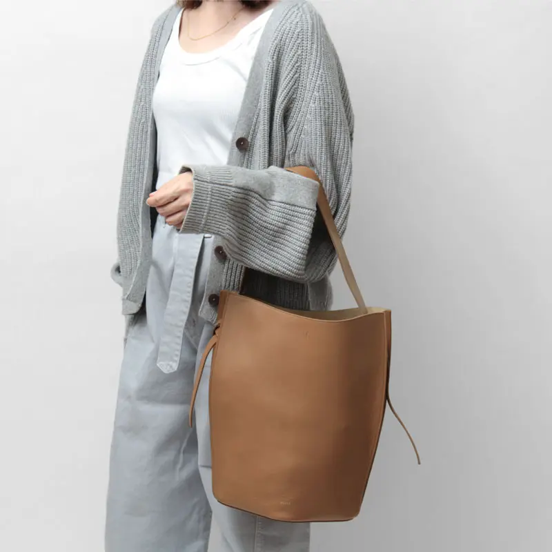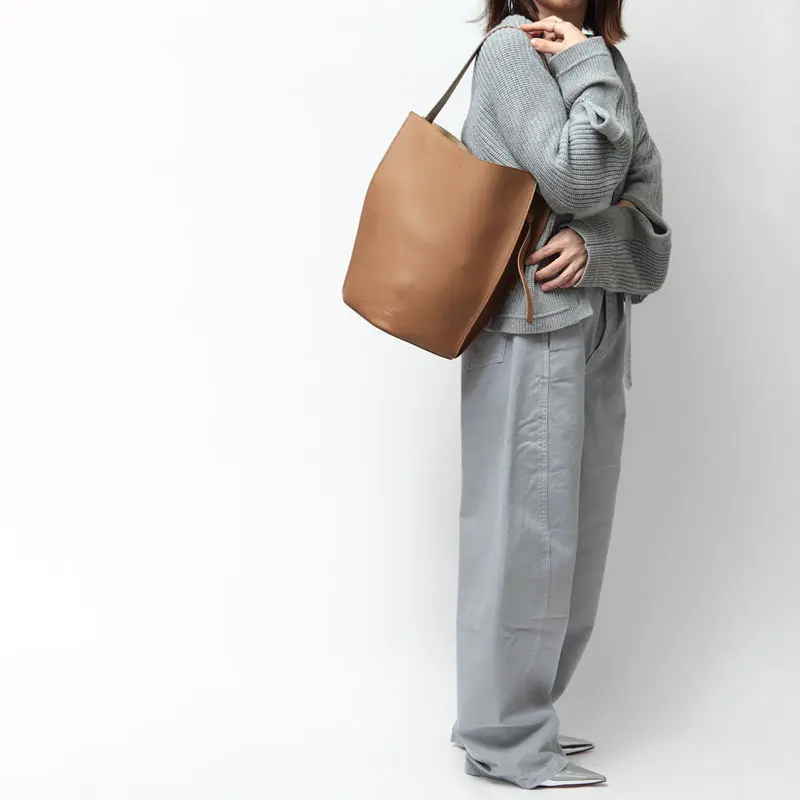 持つ人のスタイルを際立たせるミニマルなデザインと、洗練されたバケット型シルエットが魅力のKota L トートバッグ。リラックス感がありながら、どんなコーデにも品格を与えます。ニットやカジュアル、オフィスでのきれいめスタイルまで、シーンを選ばず活躍。流行に左右されないタイムレスなデザインは、まさに長く愛用できる「一生もの」の逸品です。