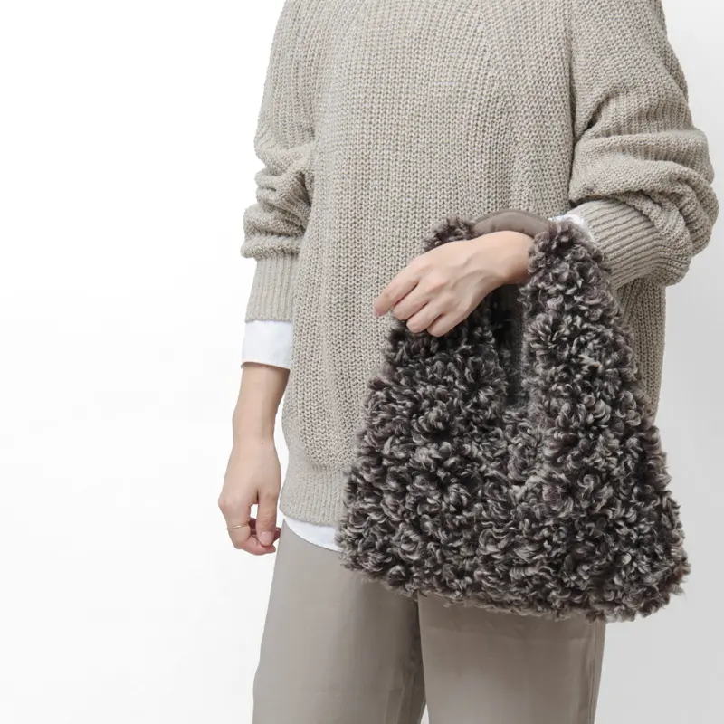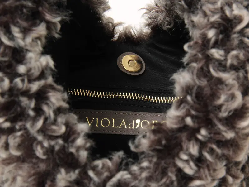 ムラ感のあるカラーと強めのカールが特徴のチキャンラム風エコファーを使用した"VIOLAd'ORO ヴィオラドーロ"の巾着バッグ。リアルに近い風合いと特別感を楽しめる上質な素材感が、季節のコーディネートに華やぎを添えます。小ぶりですが長財布やペットボトルなど、日々の必需品をしっかり収納できるサイズ感で、使い勝手の良い大きさ。デイリーユースはもちろん、ちょっとした旅行まで幅広いシーンで活躍します。