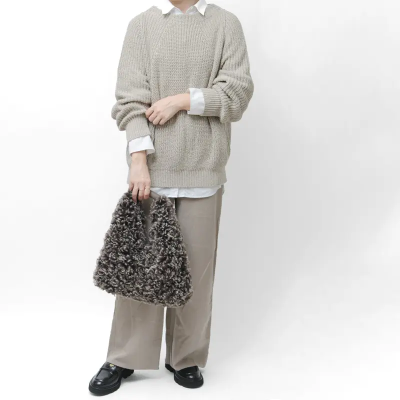 装いに加えるだけで、シーズンムード高まるファーバッグ。ハンドルにはスエードをしており、可愛さの中に大人らしい上品さを演出。