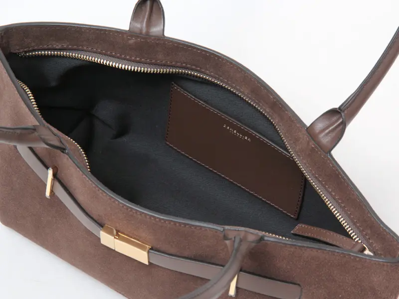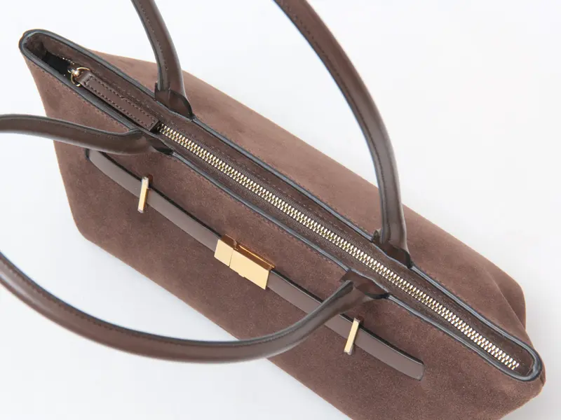 本体には、しっとりとしたスエード素材を採用。イタリアの皮なめし工場から独占的に調達した、EU規制に準拠した最高品質の本革を使用し、熟練職人の手によって丁寧に仕上げられています。スエードの柔らかく奥行きのある表情が絶妙に調和し、素材の魅力を存分に堪能していただけます。