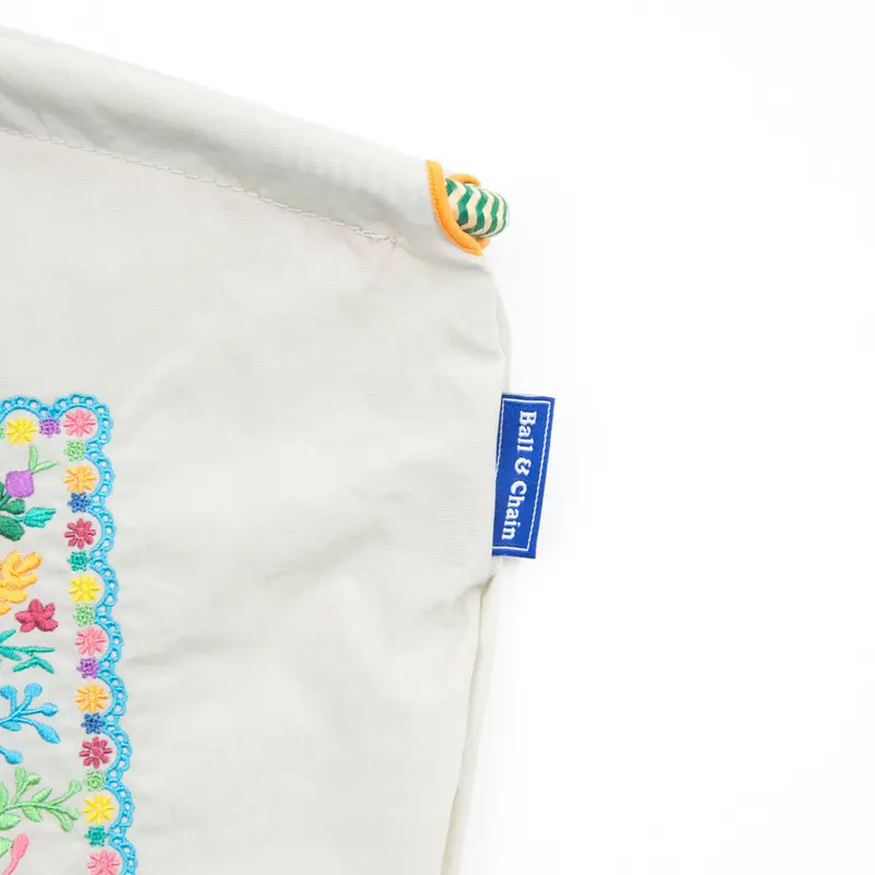 前面に施したキャッチ―な刺繍が、普段のショッピングを楽しくしてくれる"ボールアンドチェーン / BALL&CHAIN"のエコバッグ。SAN HIDEAKI MIHARA/サンヒデアキミハラのデザイナー、三原英詳さんがデザインする"オリジナルシリーズ"です。