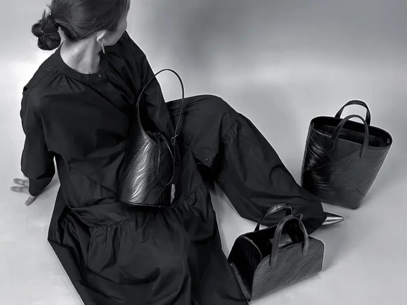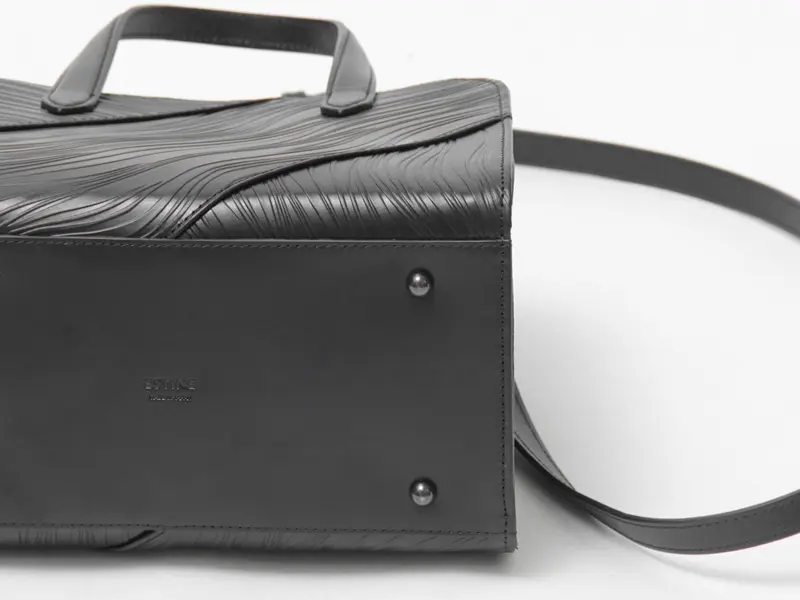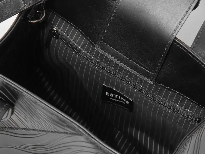 モダンなアーバンスタイルを提案する日本発バッグブランド"エスティーヌ ESTINE"の「ノワリズム」シリーズ。上質なブラックレザーに施された波型エンボスが、アートピースのような美しさを放ち、丸みを帯びた台形型のクラシックなトートフォルムが、スタイリングをモードに昇華。必需品が収まるサイズ感で、デザイン性と実用性を兼ね備えた逸品です。