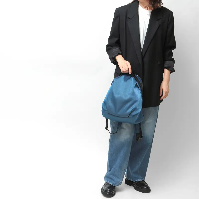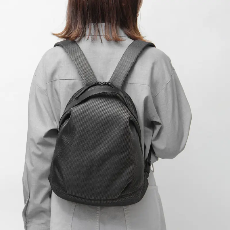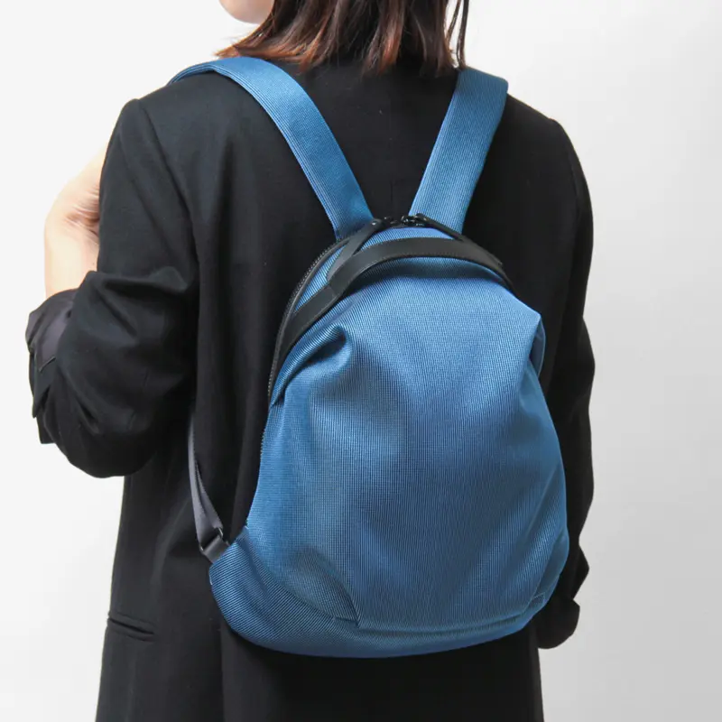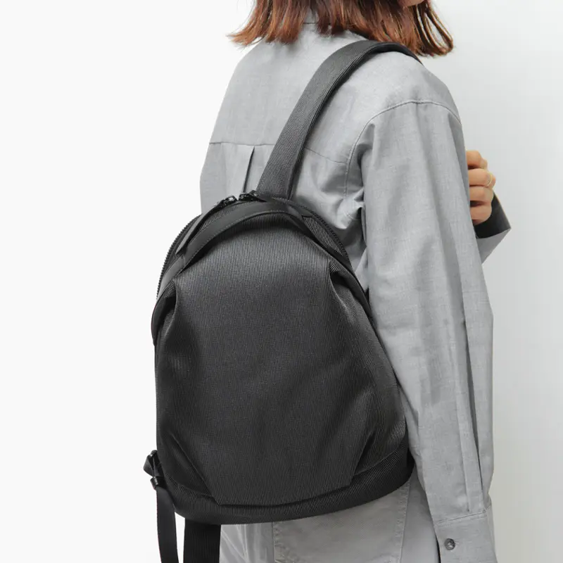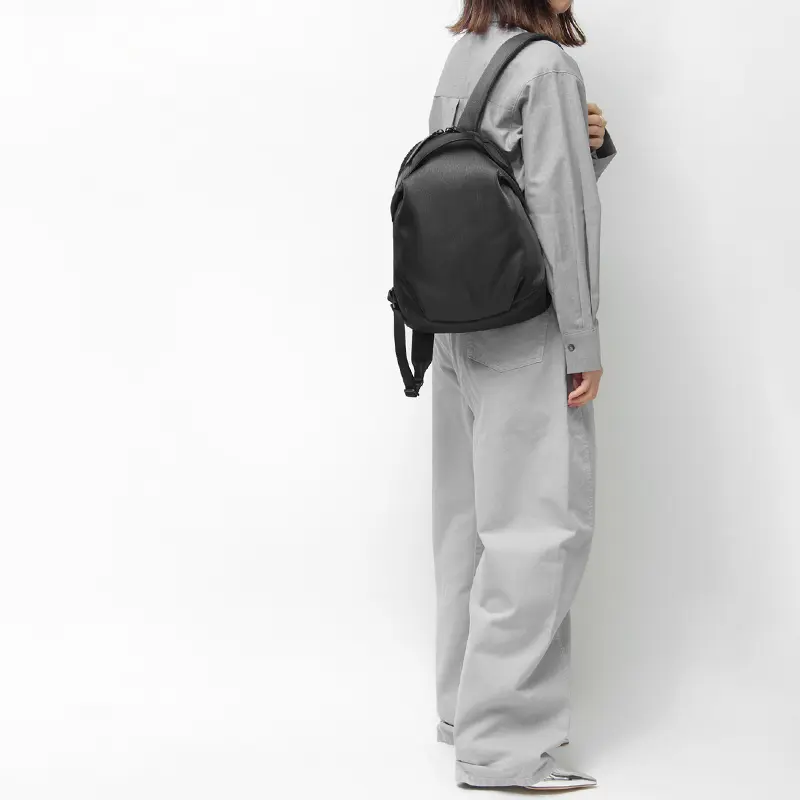 品良く背負えるコンパクトなリュックサック。丸みを帯びたフォルムと美しい光沢が、カジュアルな装いをクラスアップします。軽量で身体に馴染むデザインは、通勤や自転車移動はもちろん、旅行などのアクティブなシーンに最適。おしゃれと実用性を両立させたい方方におすすめな一品です。