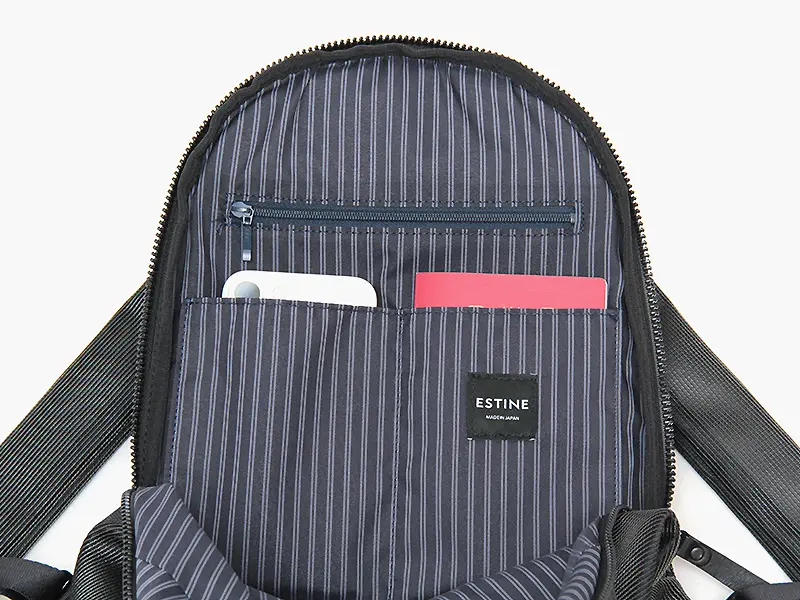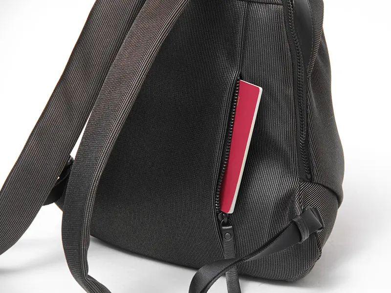 リュックを背負った際に身体に密着する背中側に、独立したファスナーポケットを装備。パスポートやスマートフォンなどの貴重品を安心して収納できるセキュリティ性の高い設計です。背負ったままでもスムーズにアクセスできるため、移動中や混雑時にもスマートに対応できます。