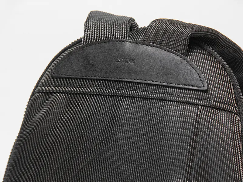 ボディーの美しい曲線に沿って流れるように取り付けられた本革製トップハンドルは、実用性とデザイン性を両立。荷物の上げ下ろしや電車内での手持ち、フックへの掛け置きがスマートに行えます。また、本革が持つ上質さが、リュックのカジュアル感を抑え、上品で洗練された印象を与えます。
