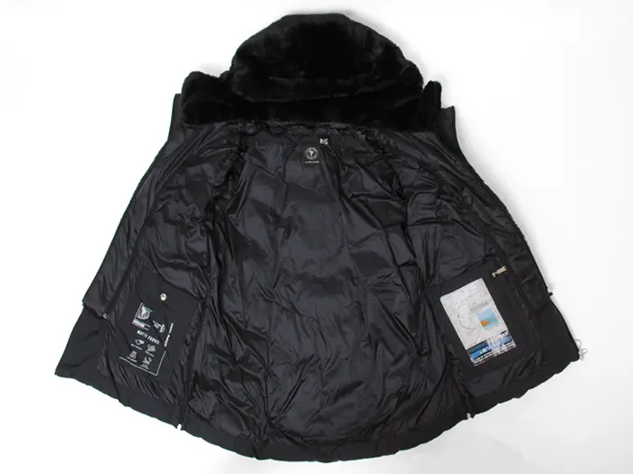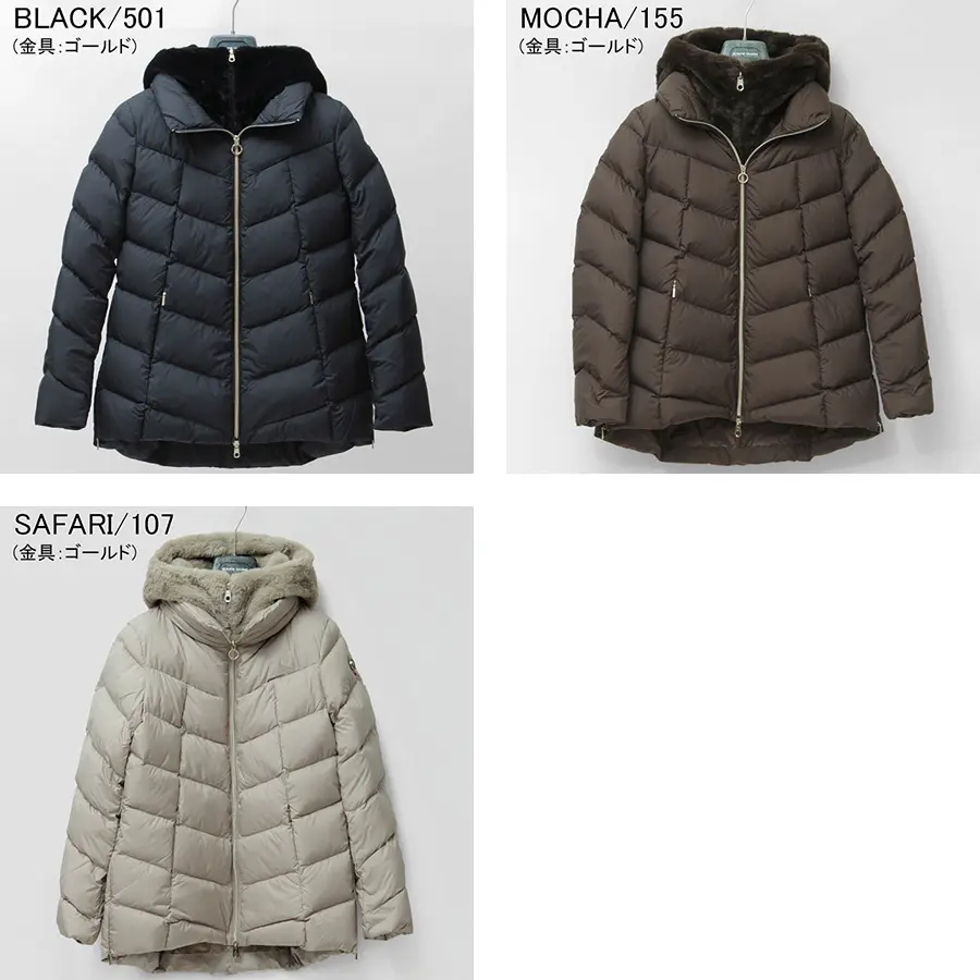 素材は強度と耐久性に優れたマットポリエステルと、ラビットファータッチのエコファーを採用。表面には撥水・撥油の機能を搭載し、実用性にも優れた一着。保温性はもちろん、高い透湿性を備えており、汗やムレを気にせず快適に着用していただけます。中わたには、JIS認定の800フィルパワー*で-10℃に対応する高級ダウンを採用しています。
