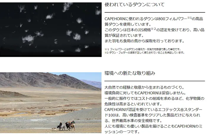*フィルパワーとはダウンの復元力・反発力を数値で表した単位です。