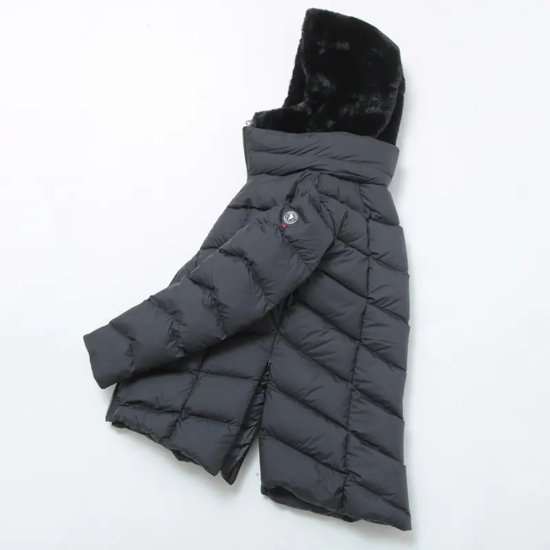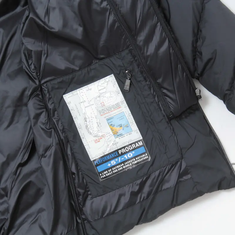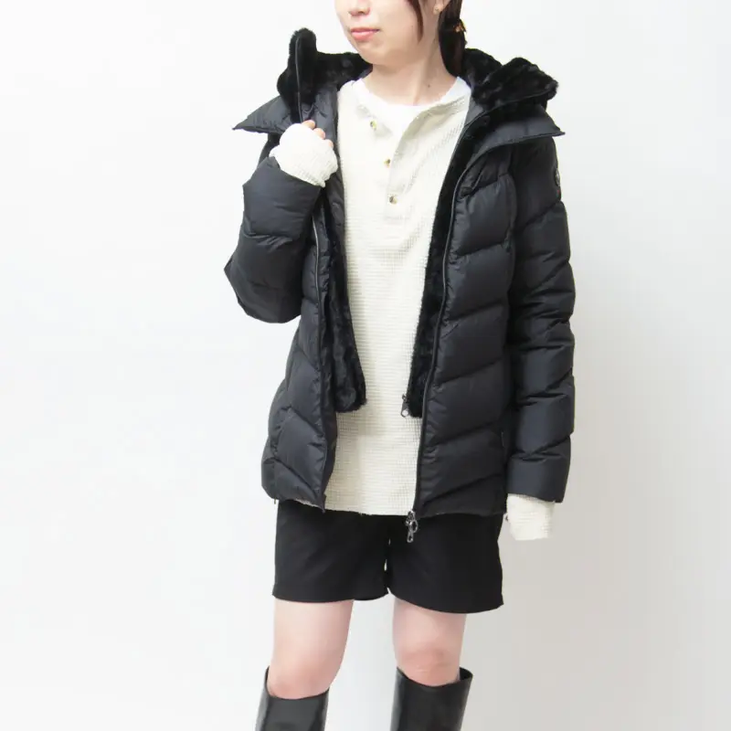素材は強度と耐久性に優れたマットポリエステルと、ラビットファータッチのエコファーを採用。表面には撥水・撥油の機能を搭載し、実用性にも優れた一着。保温性はもちろん、高い透湿性を備えており、汗やムレを気にせず快適に着用していただけます。中わたには、JIS認定の800フィルパワー*で-10℃に対応する高級ダウンを採用しています。