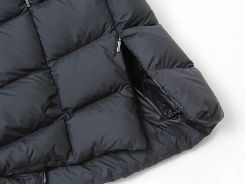 ガンメタルブラックジップが、全体をワントーンでまとめてくれます。開閉はダブルファスナー式で、逆開きが可能なため、裾を開けることで動きやすく、コーディネートのアレンジも可能です。