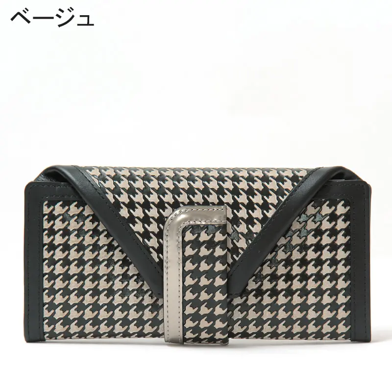 HIROKO HAYASHI ヒロコハヤシ LONDRA 千鳥格子 長財布ミニ ベージュ