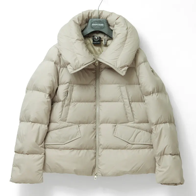 CAPE HORN(ケープホーン)の2025AW新作のショートダウン「CONARIPE」。ふんわりとしたボリュームのある襟がリッチな印象を演出し、ドローストリングで絞れば立体感のあるシルエットに。軽やかな着心地ながら防寒性にも優れ、寒い日のお出かけにも頼れる一着です。 シンプルでクリーンなデザインは、エレガントにもカジュアルにもマッチ。撥水加工を施しているため、小雨の日も安心して着用できます。