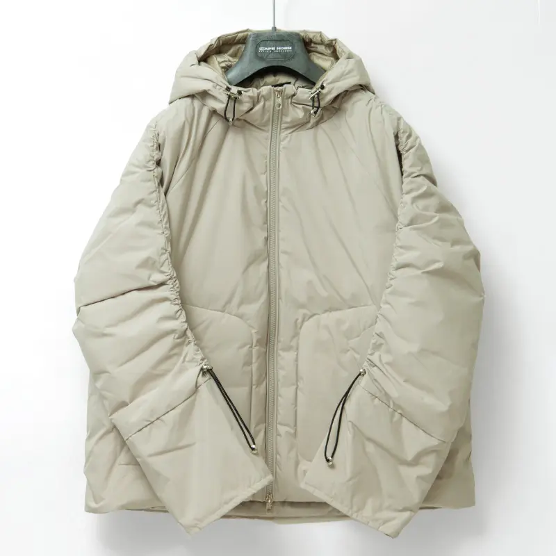 オーバーサイズでありながら、ラフになりすぎない上品さを備えたダウンジャケット。程よいボリューム感とドローストリングのデザインが、シルエットに変化を加えます。撥水性もあり、少々の雨や雪にも安心して着用いただけます。