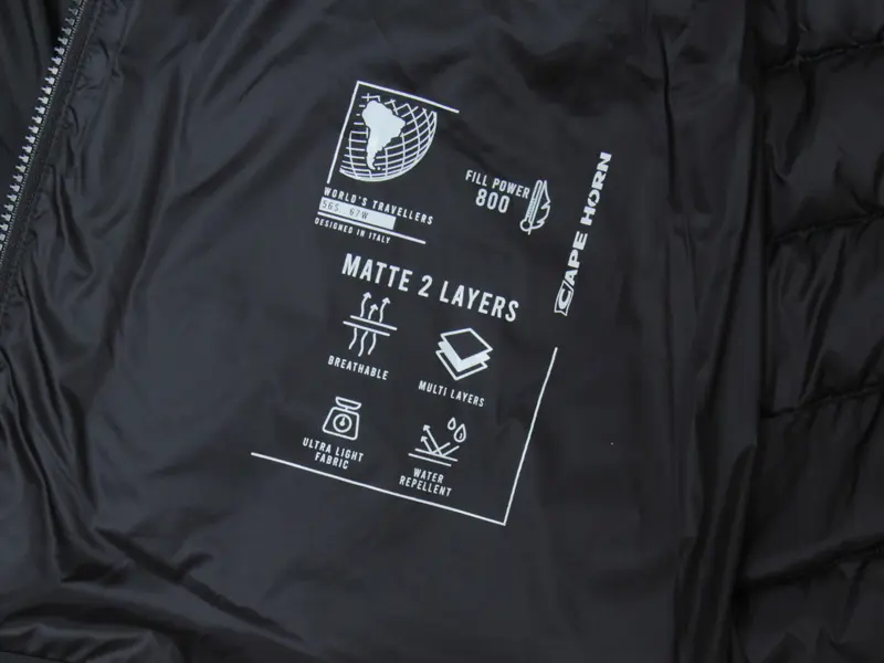 素材は強度と耐久性に優れたマットポリエステルを採用。表面には撥水・撥油の機能を搭載し、実用性にも優れた一着。保温性はもちろん、高い透湿性を備えており、汗やムレを気にせず快適に着用していただけます。中わたには、JIS認定の800フィルパワー*で-10℃に対応する高級ダウンを採用しています。