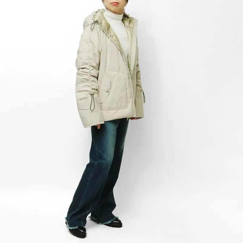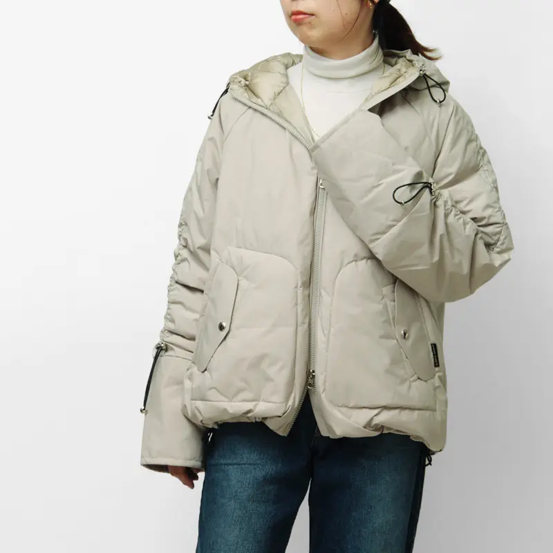 オーバーサイズでありながら、ラフになりすぎない上品さを備えたダウンジャケット。程よいボリューム感とドローストリングのデザインが、シルエットに変化を加えます。撥水性もあり、少々の雨や雪にも安心して着用いただけます。
