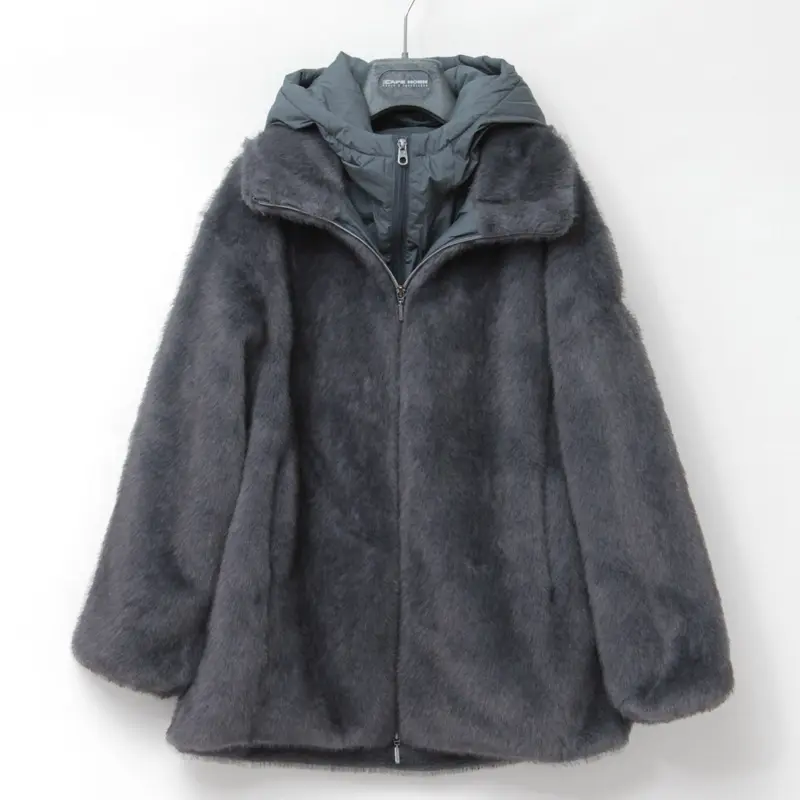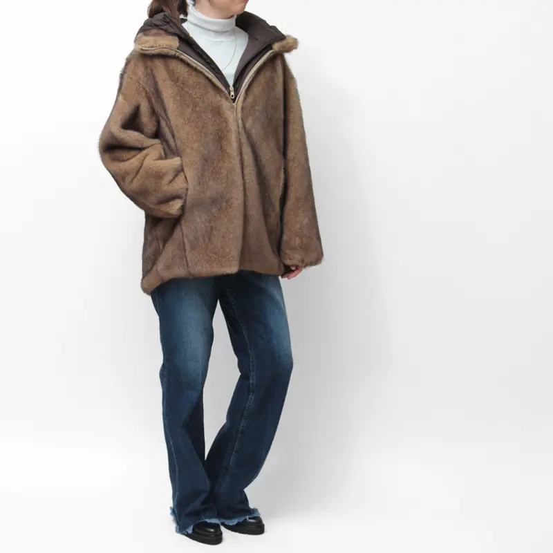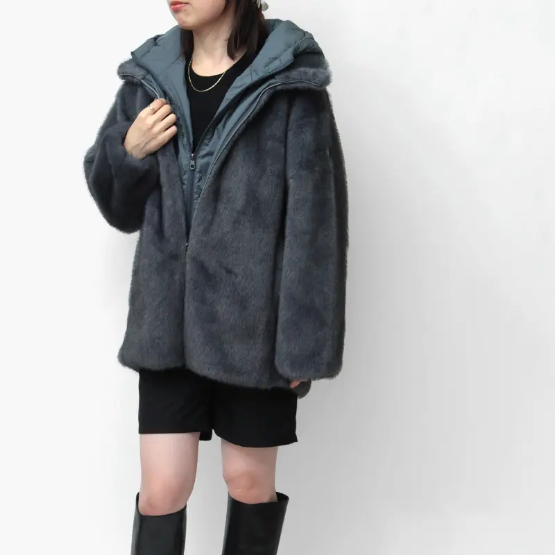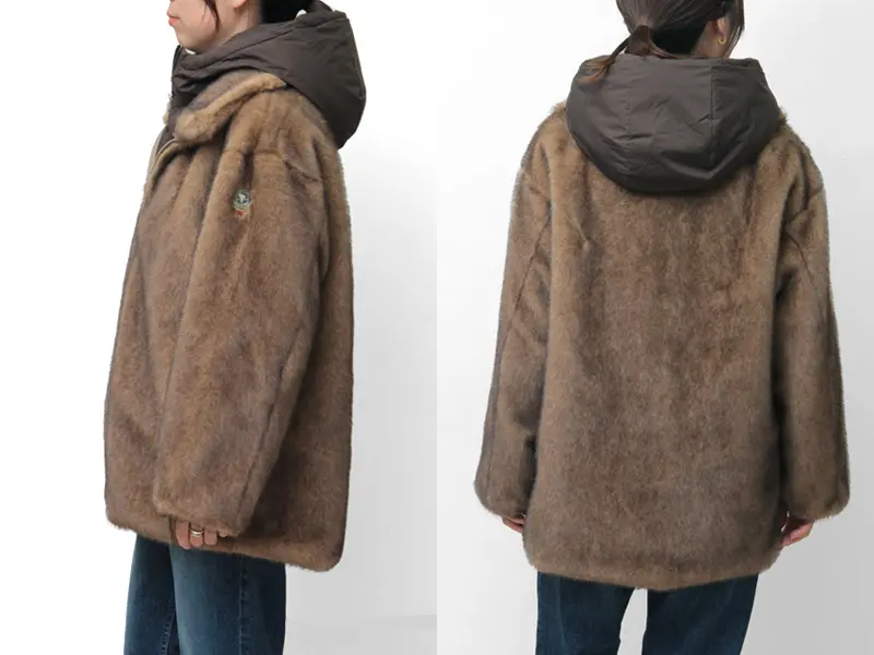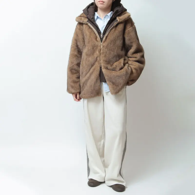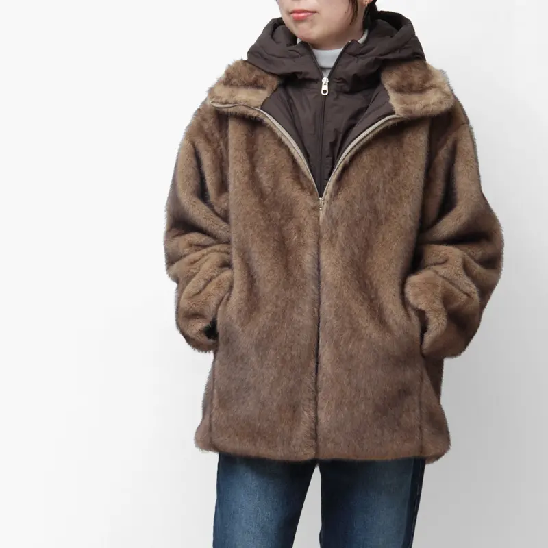 程よいボリューム感で、上品なアクセントを添えるファージャケット。フード付きデザインがカジュアルさをプラスしつつ、クリーンなシルエットに。セミロング丈で合わせやすく、普段使いから休日のお出かけまで幅広く活躍します。