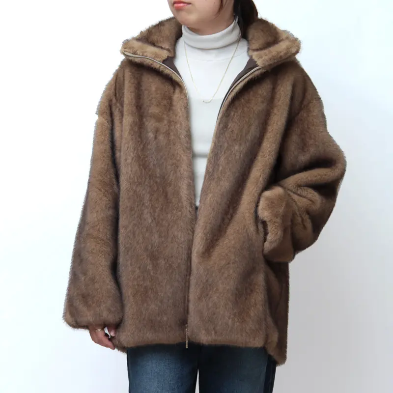 柔らかくミンクタッチのリッチ感あふれるエコファーは、艶を抑えたマットな質感で上品な印象に。毛先にかけてダブルカラーになっており、立体感と高級感を演出します。