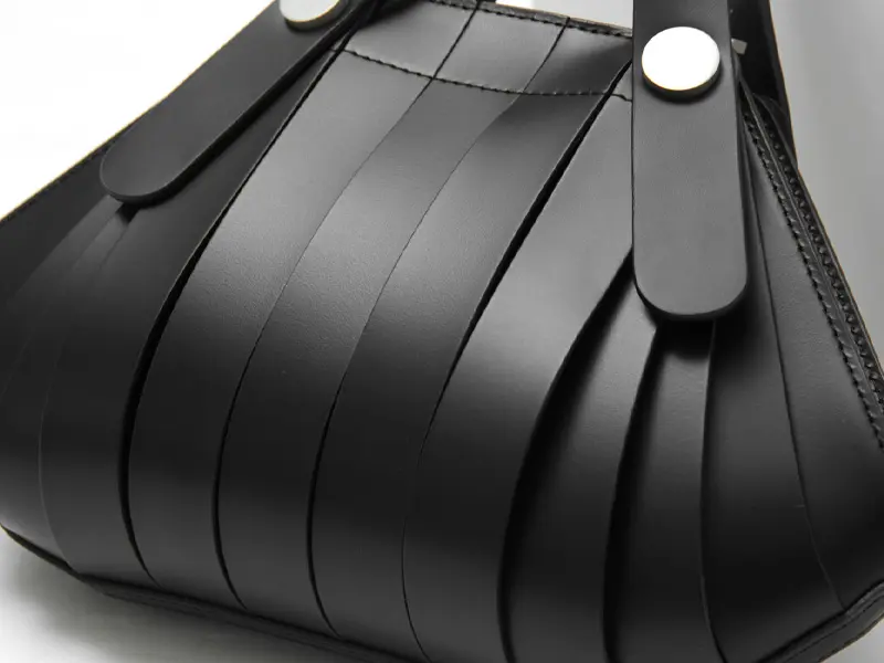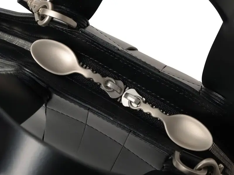 クロームなめし牛革の上品な光沢とフラットな質感が、大人の上質感を演出。レザーの縦ラインが光を受け止め、豊かな表情を生み出します。ユニークなスプーン型の引手が遊び心あるアクセント。丁寧な作り込みにより、長く愛用できる、洗練された一品です。