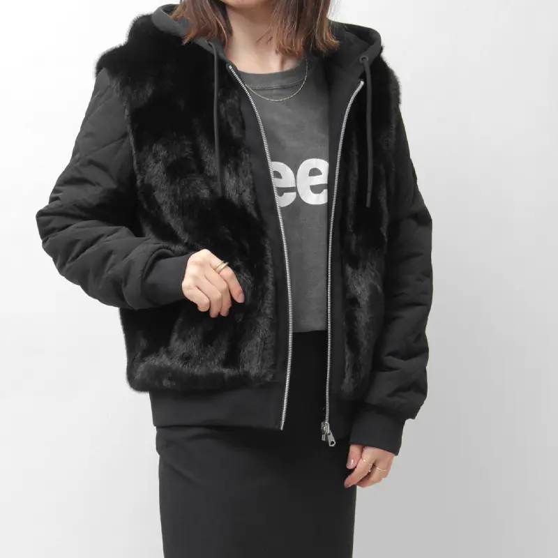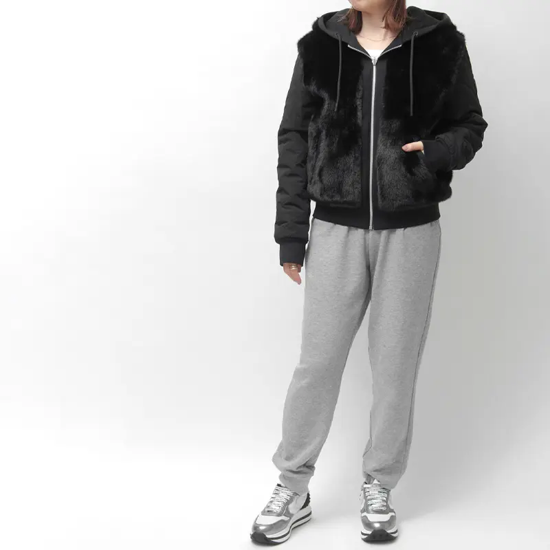 前身頃に贅沢に使用されたエコファーは、まるで本物と見紛うほどのふっくらとした毛並みと深い艶が特徴です。カジュアルなブルゾンを一気にラグジュアリーな表情へと格上げします。スウェットパンツやスニーカーと合わせた、旬のスポーツMIXスタイルも華やいだ印象に。