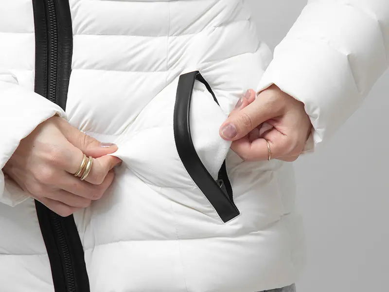 ポケットは左右に1つずつ配置されており、裏地にはフリース素材が使用されているため、手を入れたときにも肌触りが良く、暖かさを感じることができます。