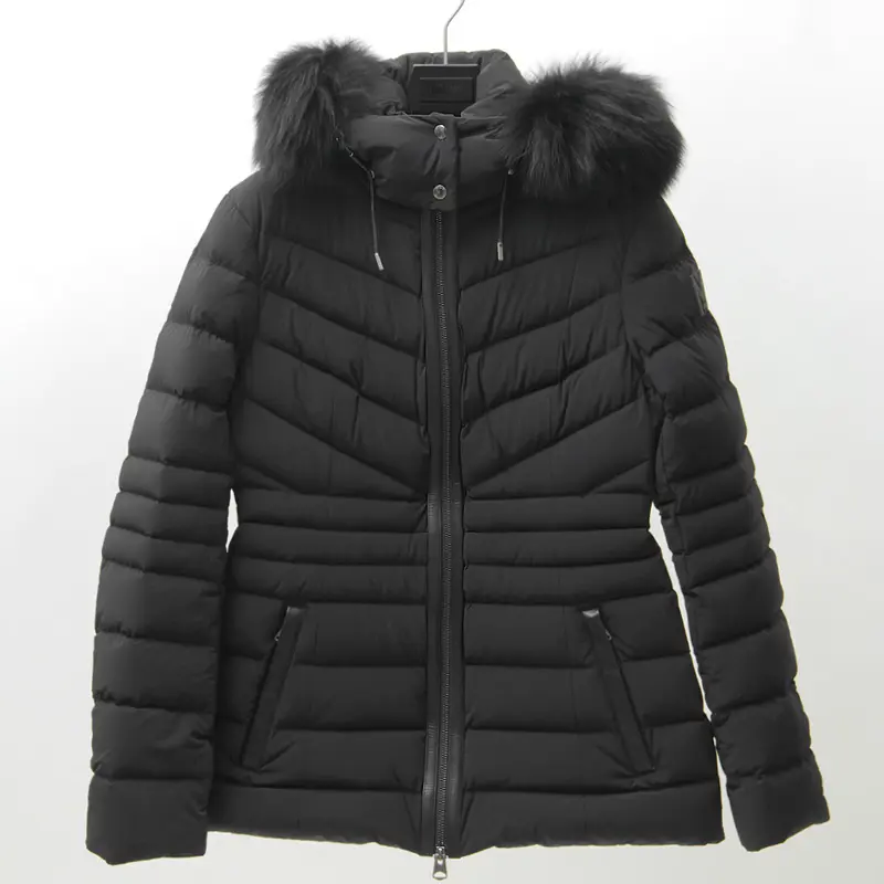 撥水性と通気性に優れたマルチウェイストレッチ素材を採用。縦横に伸縮し、細身でもストレスフリーな着心地を実現します。中綿には上質なグースダウン90%を充填し、防寒性は抜群。フードのボリューミーなフォックスファーとレザーディテールが、装いに品格と高級感を添えます。