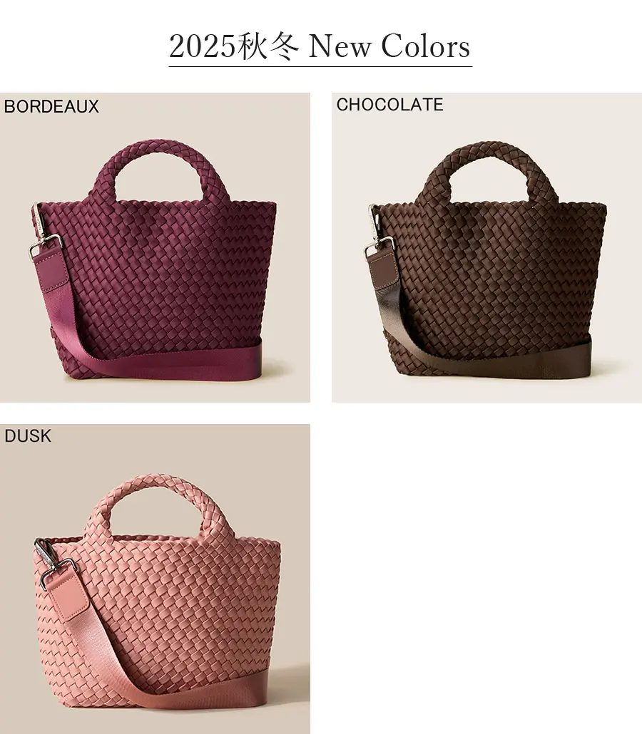 軽くて丈夫な弾力のある高密度フォーム素材を使用し、女性のライフスタイルに寄り添ったバッグを展開するNY発のバッグブランド"Naghedi/ナゲティ"。ダイビングスーツ等にも使われる機能性素材を丁寧に編み込んだメッシュ仕様のトートバッグ。取り外し可能なショルダーベルトを備えた2WAY仕様。長財布が収納可能なミニサイズは見た目以上の収納力で、デイリー使いしやすい絶妙なサイズ感です。シーンやコーデを選ばないテイストは、幅広い年代にオススメです。