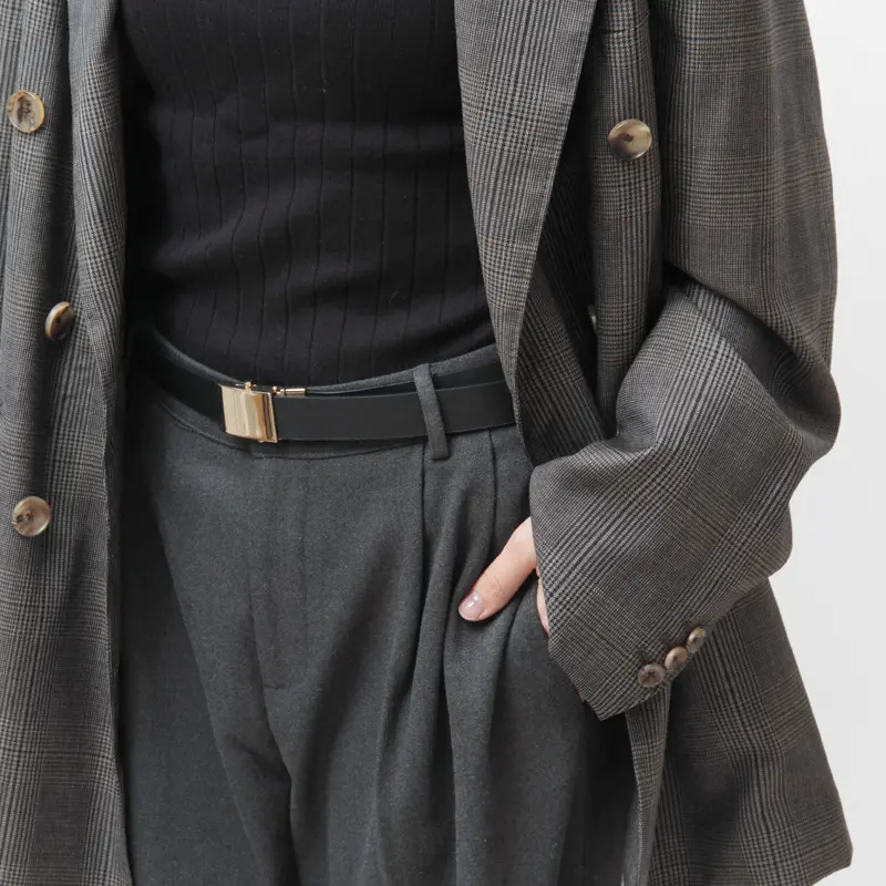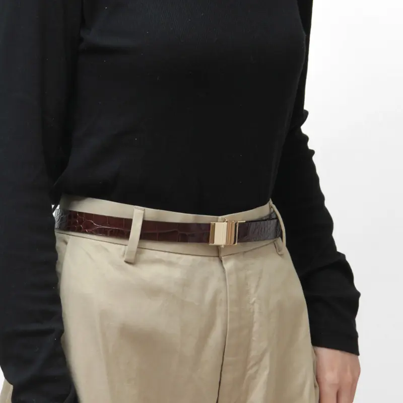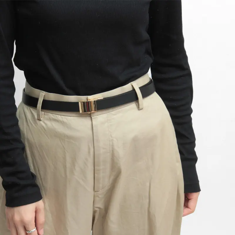 1本で2スタイル楽しめるリバーシブル仕様。身につけるだけで装いを引き締め、洗練された印象を添えます。ウエストマークすることでスタイルアップも。きれいめコーデだけでなく、カジュアルスタイルにもマッチします。
