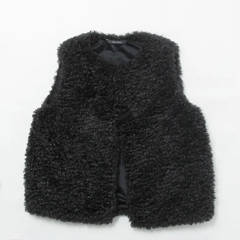 helen moore ヘレン ムーア フェイクシープスキン ジレ GILET BLACK