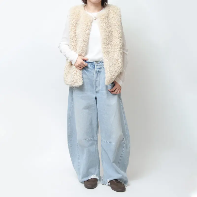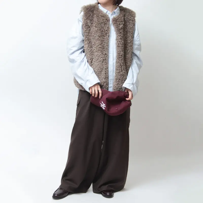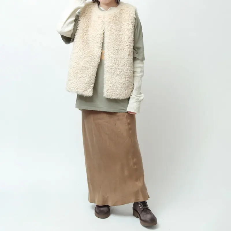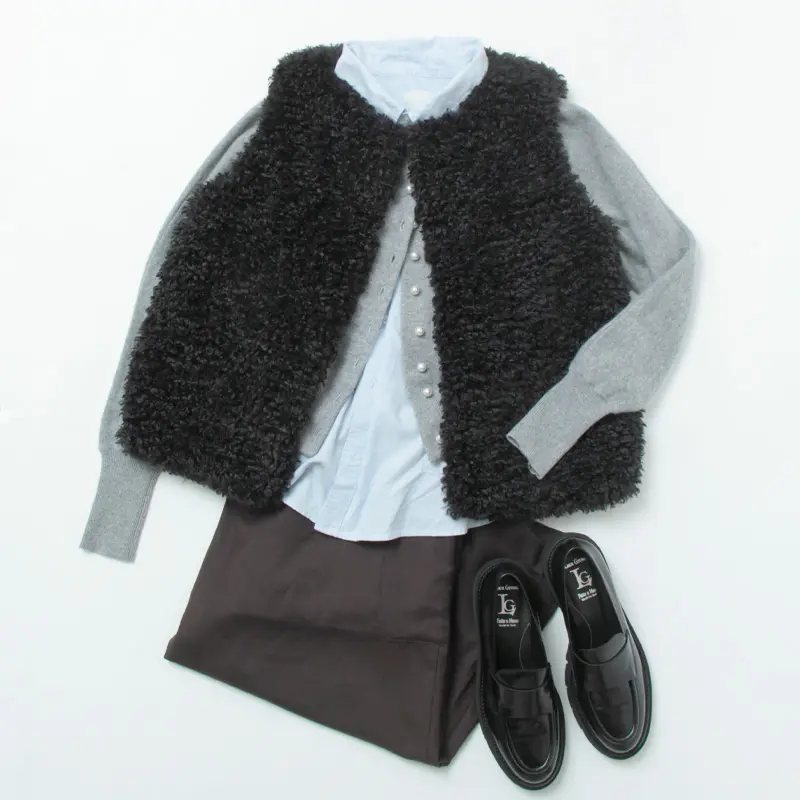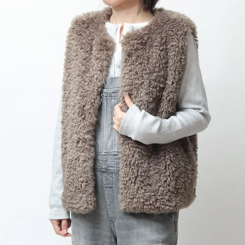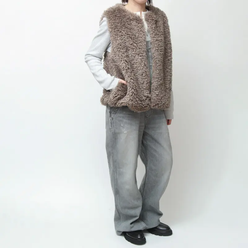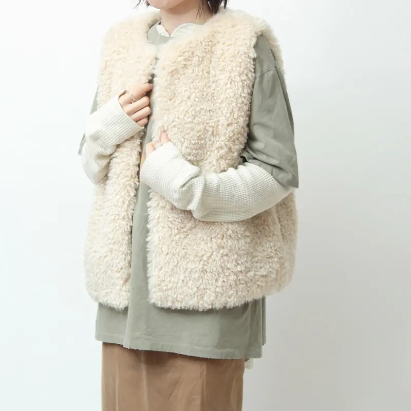 季節の変わり目に頼れるフェイクファージレ。シンプルなカットソーやシャツに重ねるだけで、手軽にレイヤードスタイルが楽しめ、コーデに奥行きとこなれ感をプラス。長く愛用できるサステナブルな一枚です。